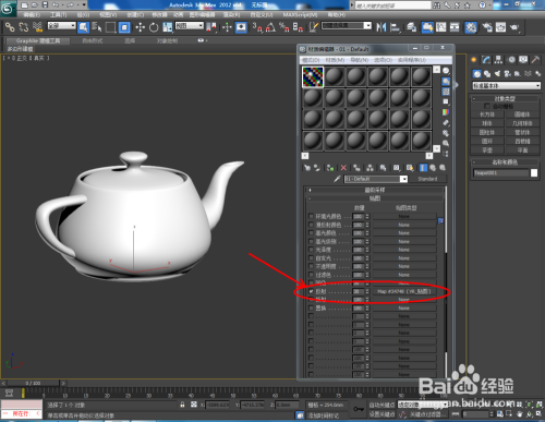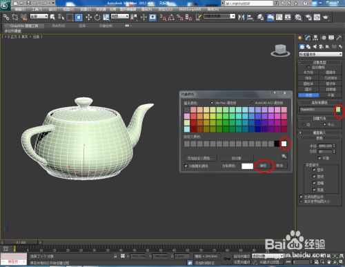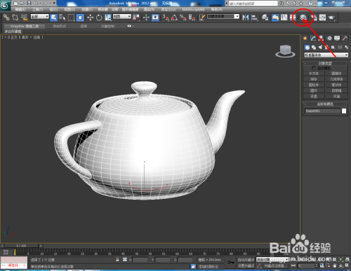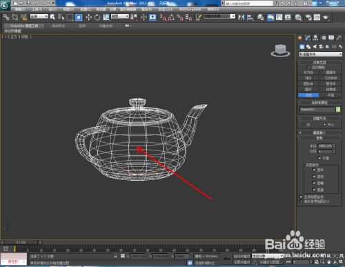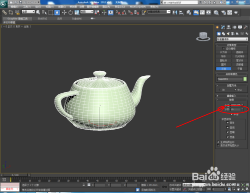 打开3Dmax2012软件,点击【建立】-【几何体】-【尺度根基体】-【茶壶】,在作图区域绘制一个茶壶模子并将茶壶的分段参数设置为:10,对象颜色设置为:白色(如图所示);