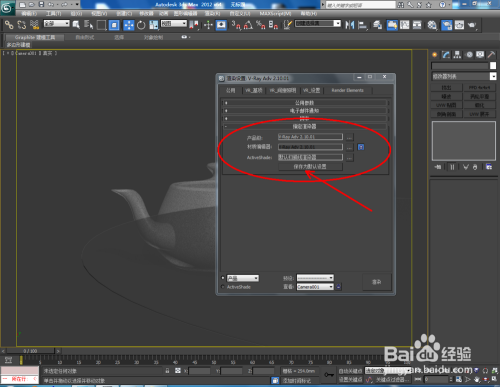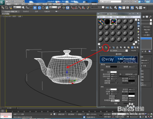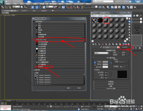 点击【材质编纂器】,弹出材质编纂器设置栏,点击【standard】-【VRayMlt】设置一个VRay材质球,按图示参数对材质球进行设置。将玻璃材质球附加给模子后,点击【衬着】出图即可。