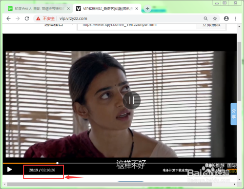 在屏幕左下角就没有“免费看6分钟”文字提醒,此刻已经免费看了28分钟了。如许可以免费看VIP片子了,并且也是高清的,还不需要登录就可以免费看别人付费才能看的片子。