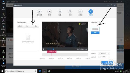 然后打开编纂视频片段对话框中单击马赛克选项。