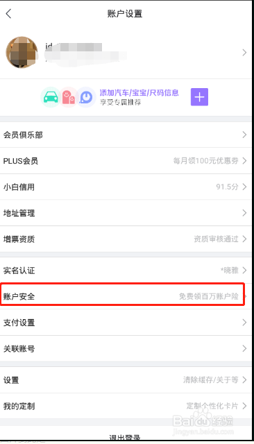 在账户设置页面中点击账户平安: