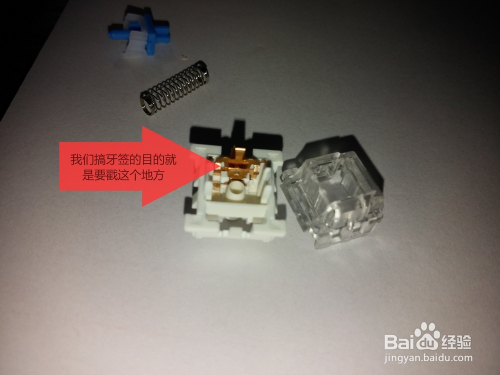 如图,是拆开的青轴内部图,因手机摄影不是很好,就拍了个远照,我们就是要经由过程牙签去插阿谁处所