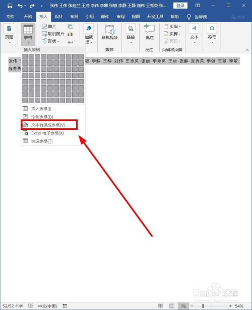 选中”表格“中的”表格,鄙人拉菜单选中“文本转换当作表格”单击