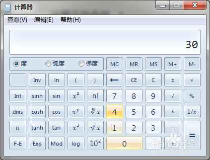 先在计较器中,选定要输入的是度数、弧度仍是梯度,并输入数值;