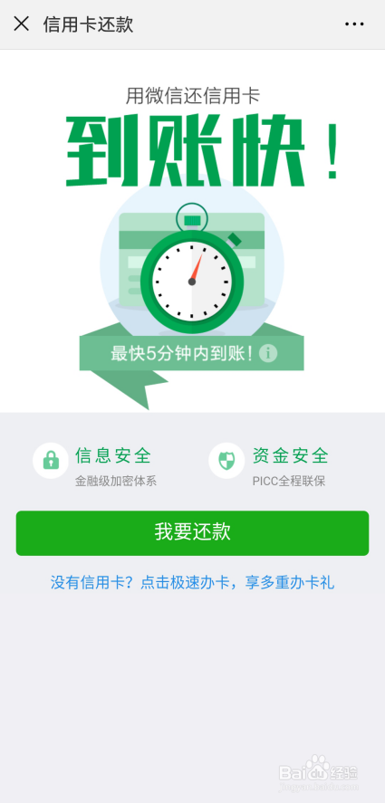 微信7.0绑定信用卡删除当作功后,主动跳转到了微信信用卡还条目宣传界面了,如下图所示。