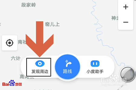 若是手机里安装了百度地图APP,那么点击打开它,然后点击地图左下方的“发现周边”选项;