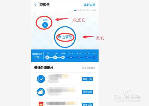 在领积分页面点击领取积分,若是有多个积分可以领取,则需要点击多次,一次只能领一个项目标积分。