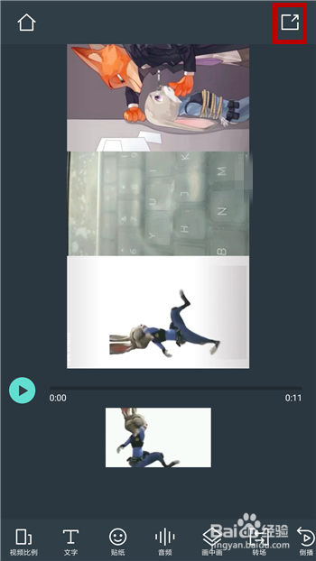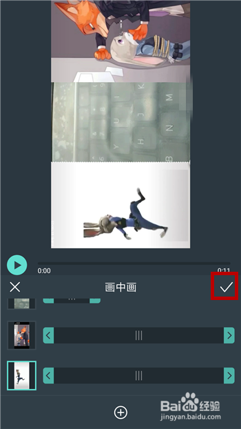 然后添加两个狐狸与兔子视频,中心放上我们本身的视频,注重调整好大小,然后点击【√】。