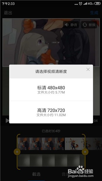然后选择好保留的视频像素,选择好后即可把视频保留到手机相册里。
