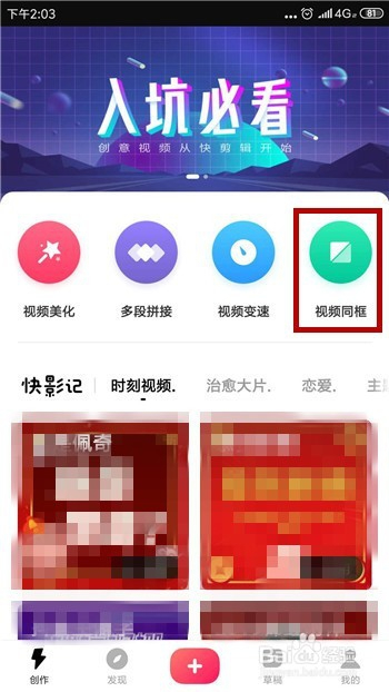 接下来打开快剪辑,在首页中点击【视频同框】功能。