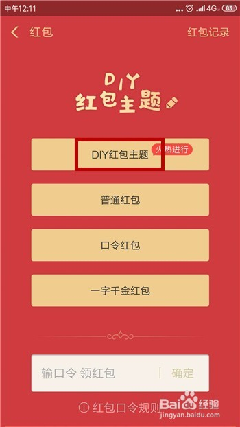 打开红包应用后可直接看到【DIY红包本家儿题】,点击该功能。