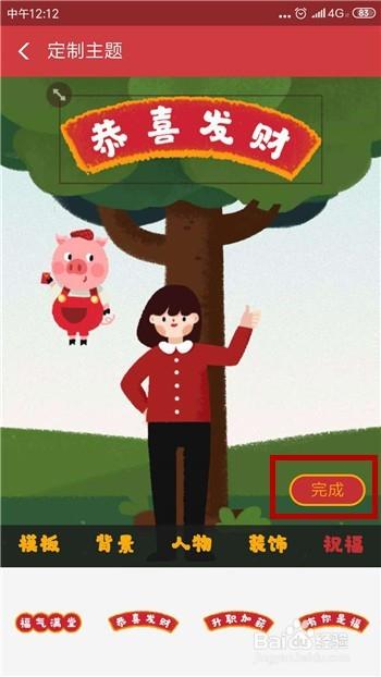 在定制本家儿题的界面里可以选择包罗人物、祝福语等信息,选择好后点击【确定】选项。