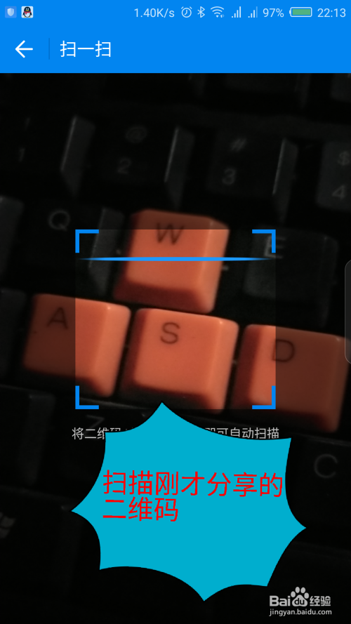 点击扫码毗连后,打开扫一扫界面,对着适才的分享的二维码,扫下就可以了。如图所示