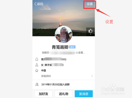 点击对方头像,进入到对方的小我信息页面中,在这个页面中找到设置并点击。