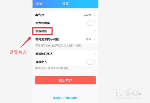 在设置界面中心部门找到设置禁言,点击进入禁言相关设置。