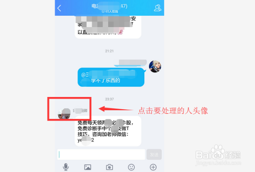 在群动静中,找到要禁言的人,点击对方的头像,选中要处置的当作员。