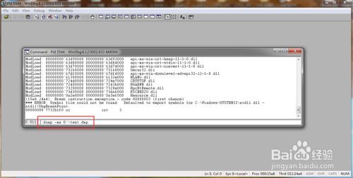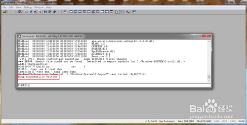 在这个处所输入.dump –ma E:\test.dmp,盘符和文件名可以自行按照需要更改