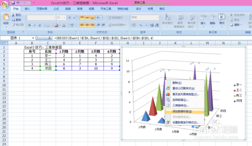9、点击任一棱锥图,右击,设置数据系列格局可以调整棱锥图的宽度