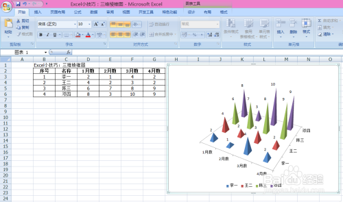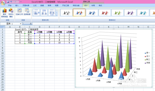 2、依次选择“插入”-“柱形图”-“三维棱锥图”