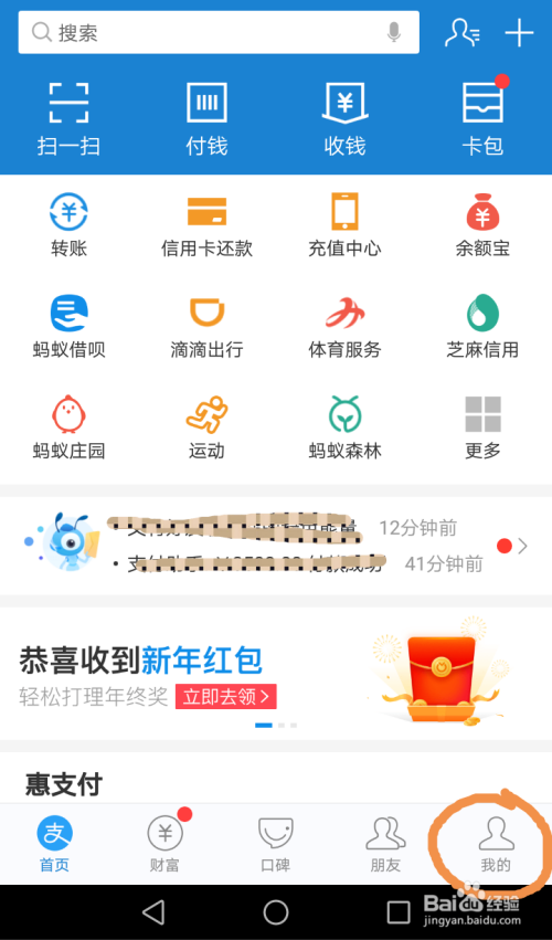 打开手机,进入付出宝应用,点击付出宝首页右下角“我的”