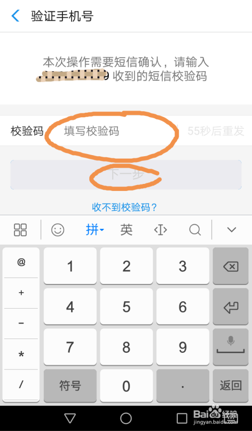 然后你会收到验证码,输入验证码后。点击“下一步”