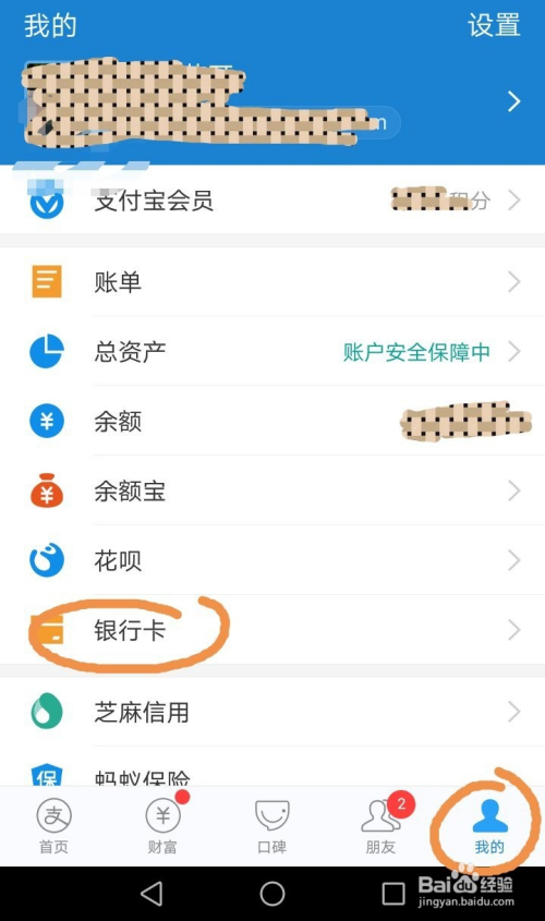 页面切换后,找到并点击进入“银行卡”