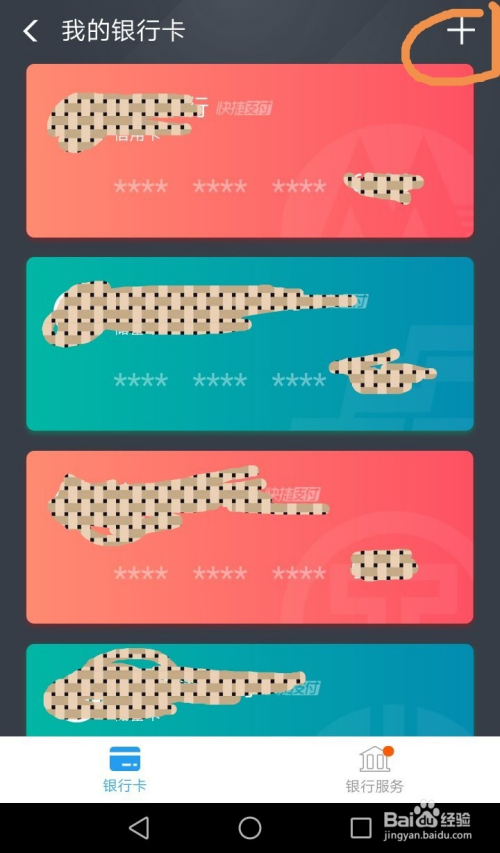 进到“银行卡”页面后,再点击右上角的“+”