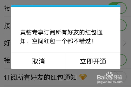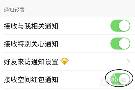 在老友动态设置了,我们可以在页面的最下方通知设置中看到“接收空间红包通知”和“订阅所有老友的红包通知”这两项;