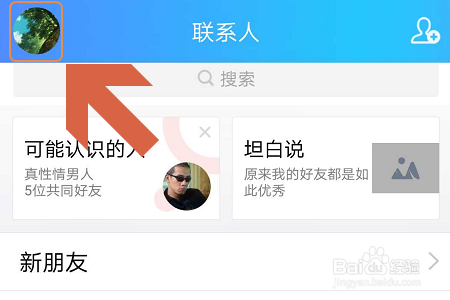 首先点击打开手机QQ软件,然后进去到首界面点击左上角的小我头像,如下图所示...