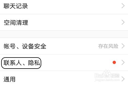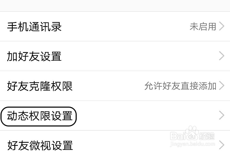 接着会跳转到设置界面,在该界面找到“联系人、隐私”,点击今后继续在新的页面内点击“动态权限设置”,见图二;