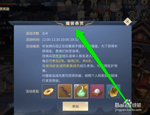 此刻魔兽山脉正在招收佣兵,报名加入今后,每日可以加入两次的活动,并获得相关的奖励。