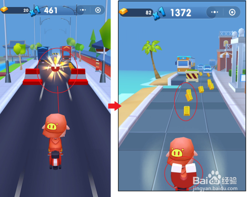 看到金币,点击屏幕,移动猪猪侠接近它们。