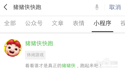 打开微信,搜刮小法式【猪猪侠快跑】,打开它。