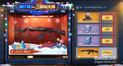 同时,在源打算界面,我们也可以激活其他的道具,激活后,完当作对应的积分使命获取积分。