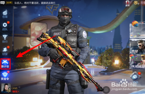 我们打开CF手游进入本家儿界面后,在游戏界面左侧点击源打算进入。