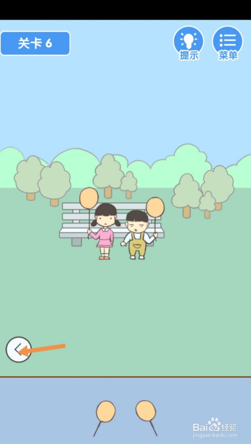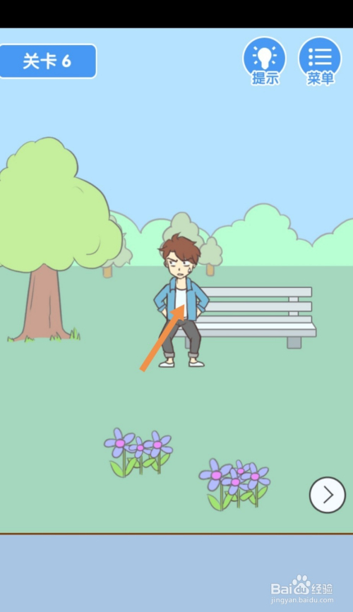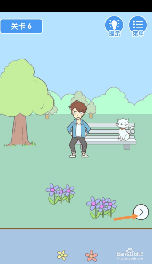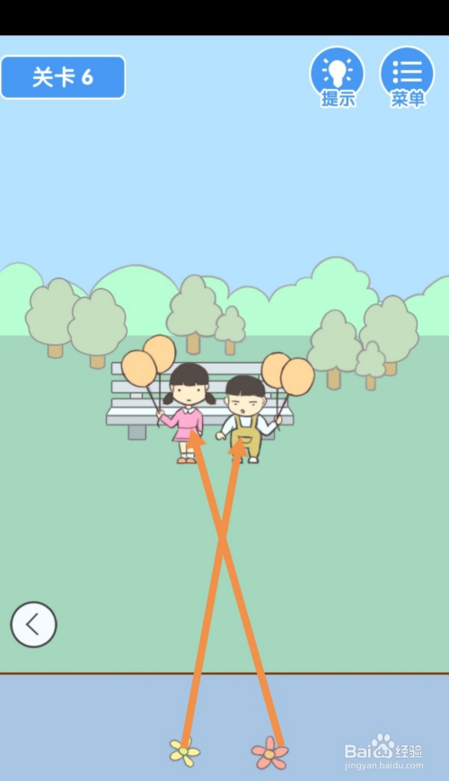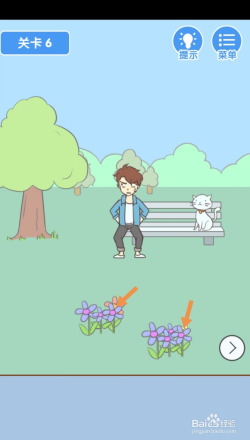 第6关先点击小红花后小黄花,然后点击标的目的右箭头到右边去。