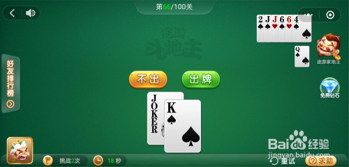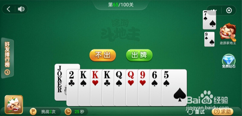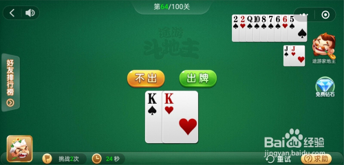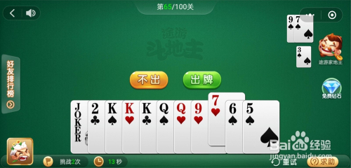 电脑打出一张Q,我打出一张小王,接着打出一张K就过关了。