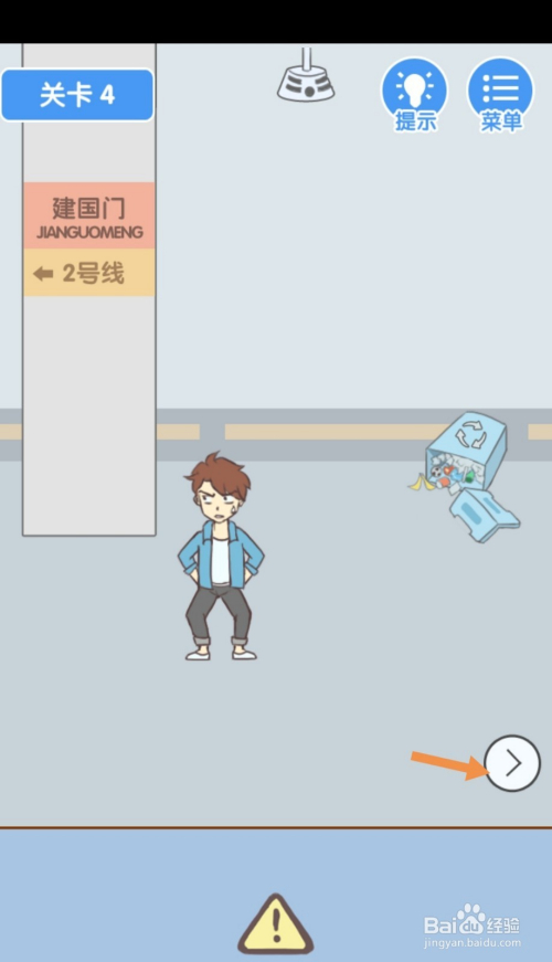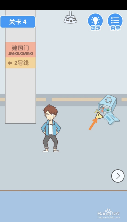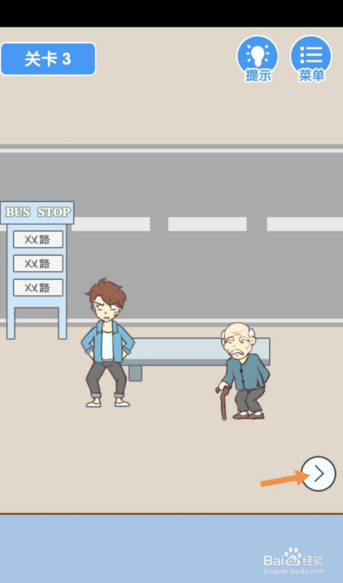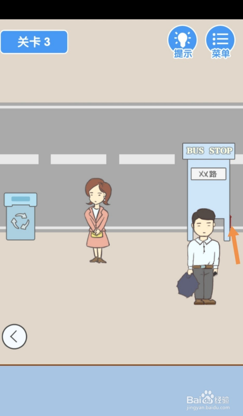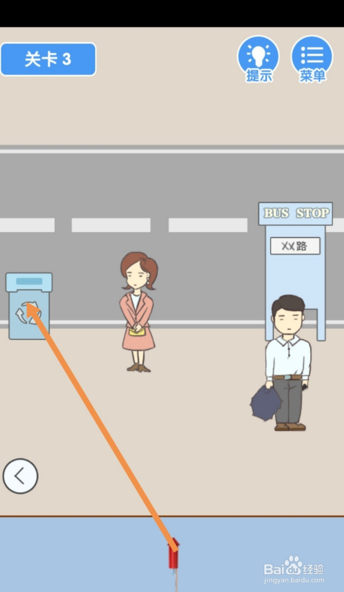 第3关先点击标的目的右箭头到右边去。在右边,点击站牌后面的爆仗。