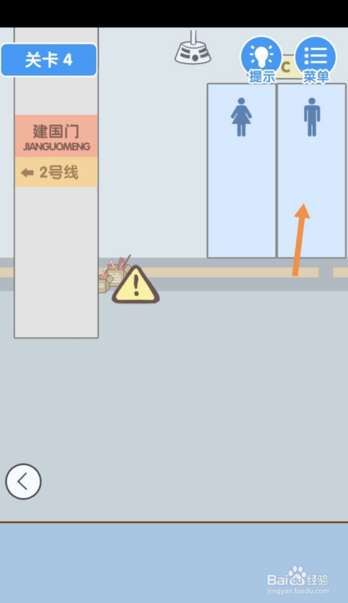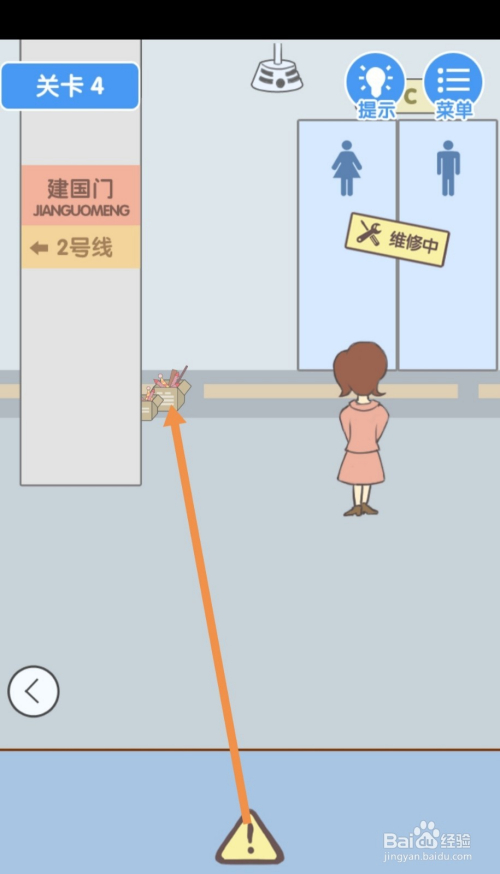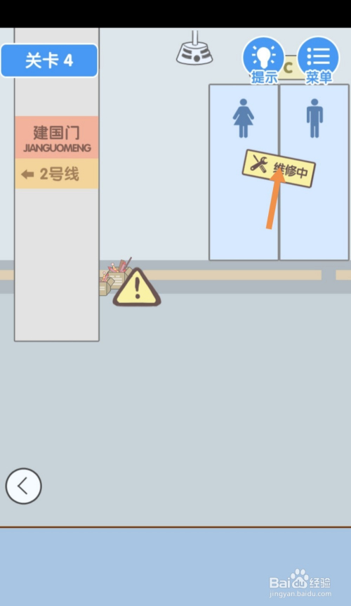 点击维修中的牌子,然后点击茅厕门就过关了。