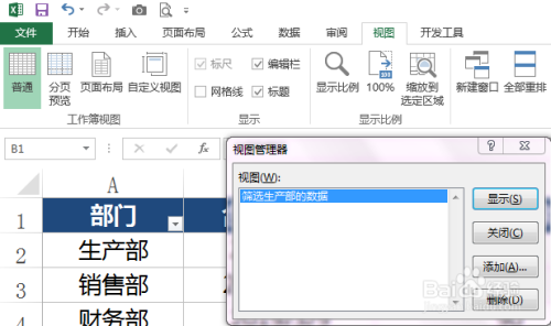 4)本身写一个视图的名称,好比:筛选出产部的数据。