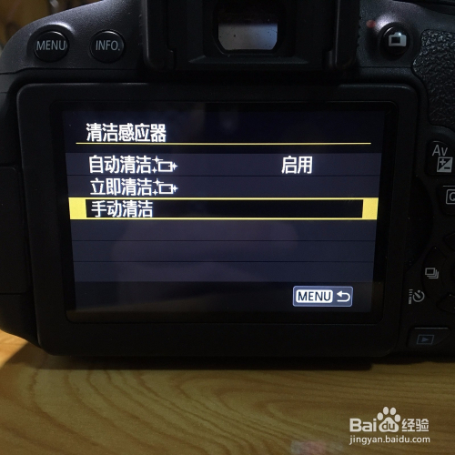 首先,需要将单反开机,在menu中找到“洁净感应器”的选项。