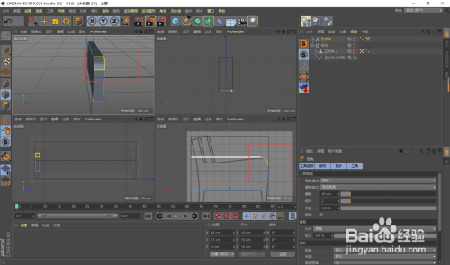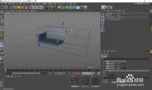 选择沙发下面的两个面利用挤压。调整挤出来的沙发腿的位置,这里可以看到挤出来腿的位置就是之前切线的位置。