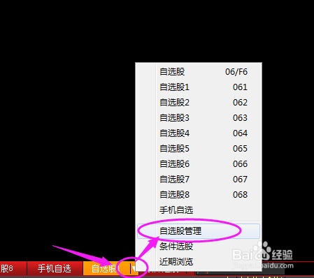 个股删除法和整体删除法差不多,首先点击软件上方的(自选股)选项,下方呈现如图所示的自选股选项。