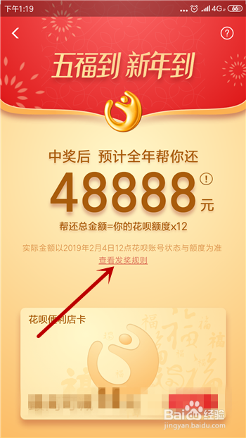 这个是按照我们的花呗还条目额度来计较的,点击【查看具体法则】。