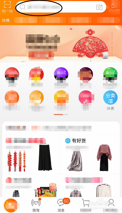 手机打开软件,在搜索框输入:清空购物车