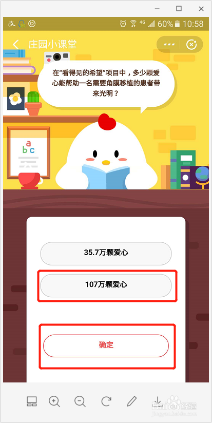 在小鸡饲料使命列内外面,有一个庄园小讲堂,点击后面的【去答题】
