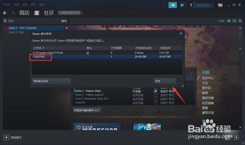 接着我们点击添加库文件夹,然后在库文件夹中找到dota2安装的根目次,如图所示;