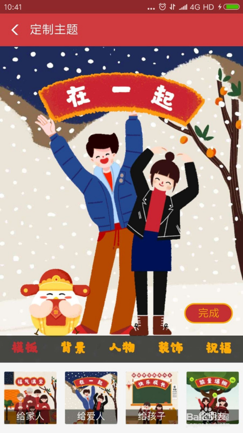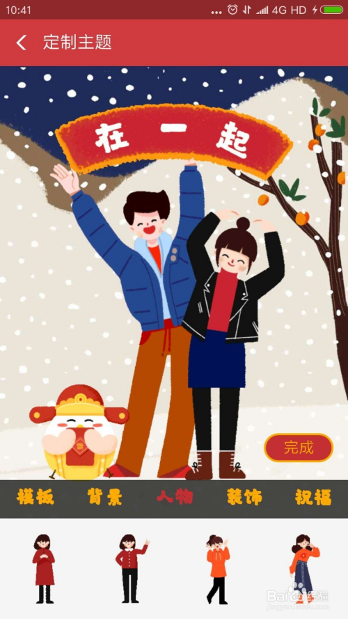 在定制界面,我么可以对布景、人物、装饰、祝福等信息进行设定。