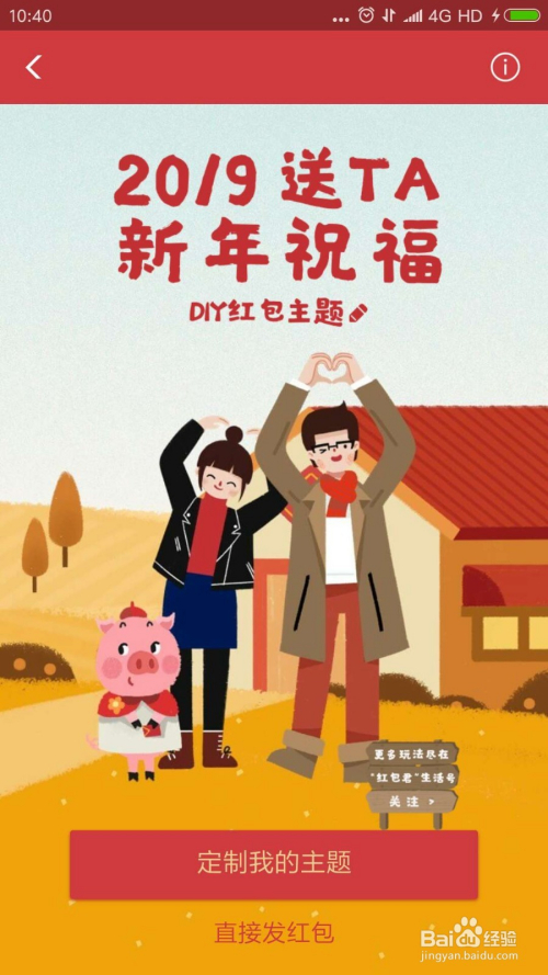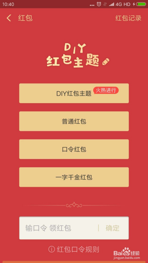 我们可以看到红包界面最上面就是“DIY红包本家儿题”,我们点击进入。