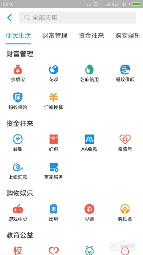 我们打开付出宝,点击常用应用最后面的“更多”。